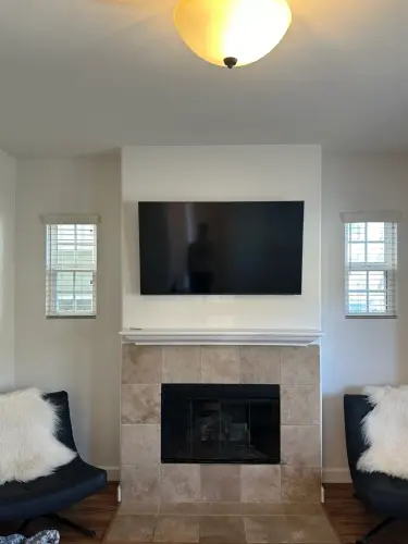 No one likes messy cords dangling from the back of a TV. With expert wire concealment, all cables are neatly hidden behind walls or organized using discreet cable management solutions, keeping everything tidy and visually appealing.
